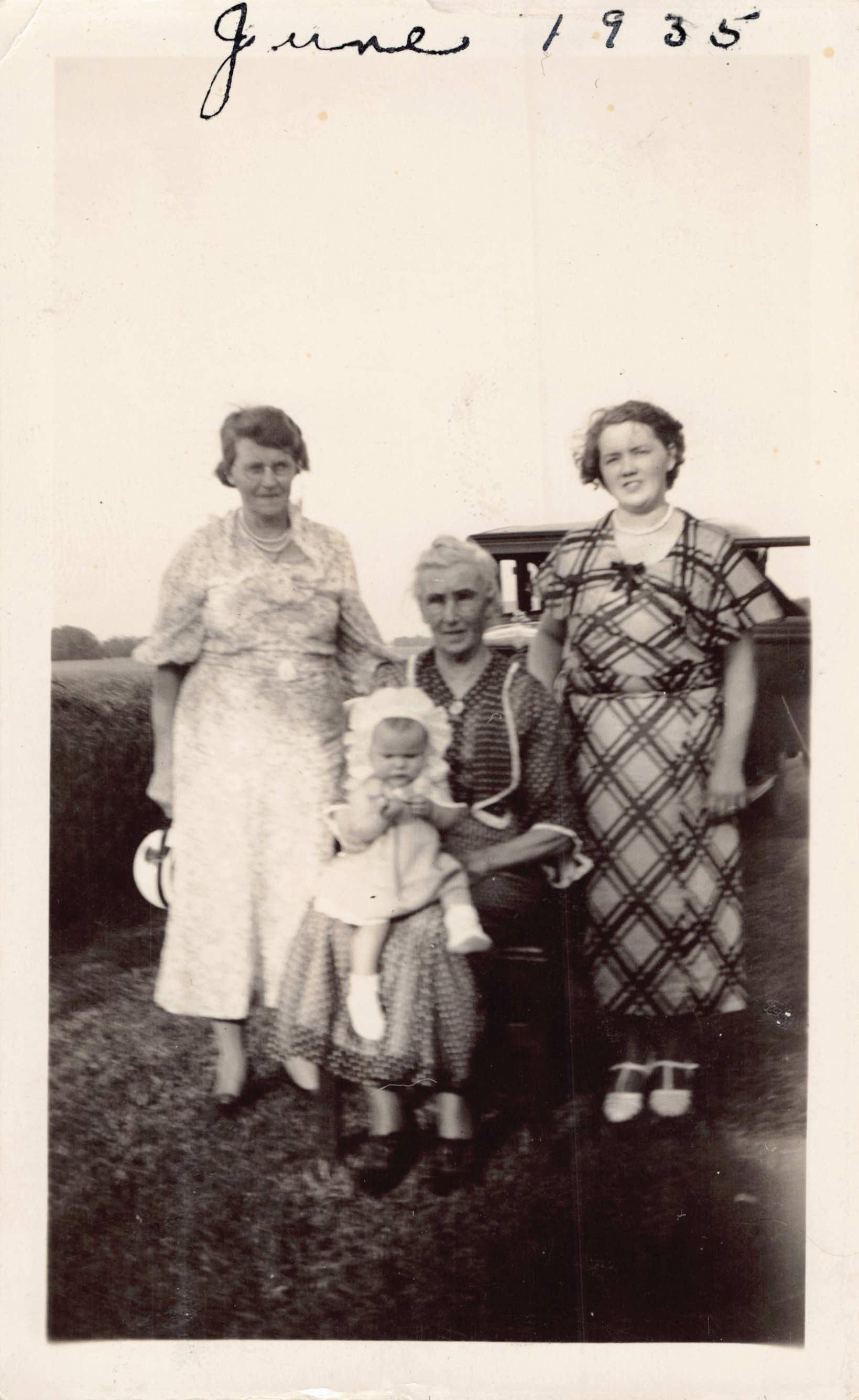 1935, Amy with her mother (Roxanne Weseman), grandmother (Nettie Warrington) and great grandmother (Roxanne Trowbridge).