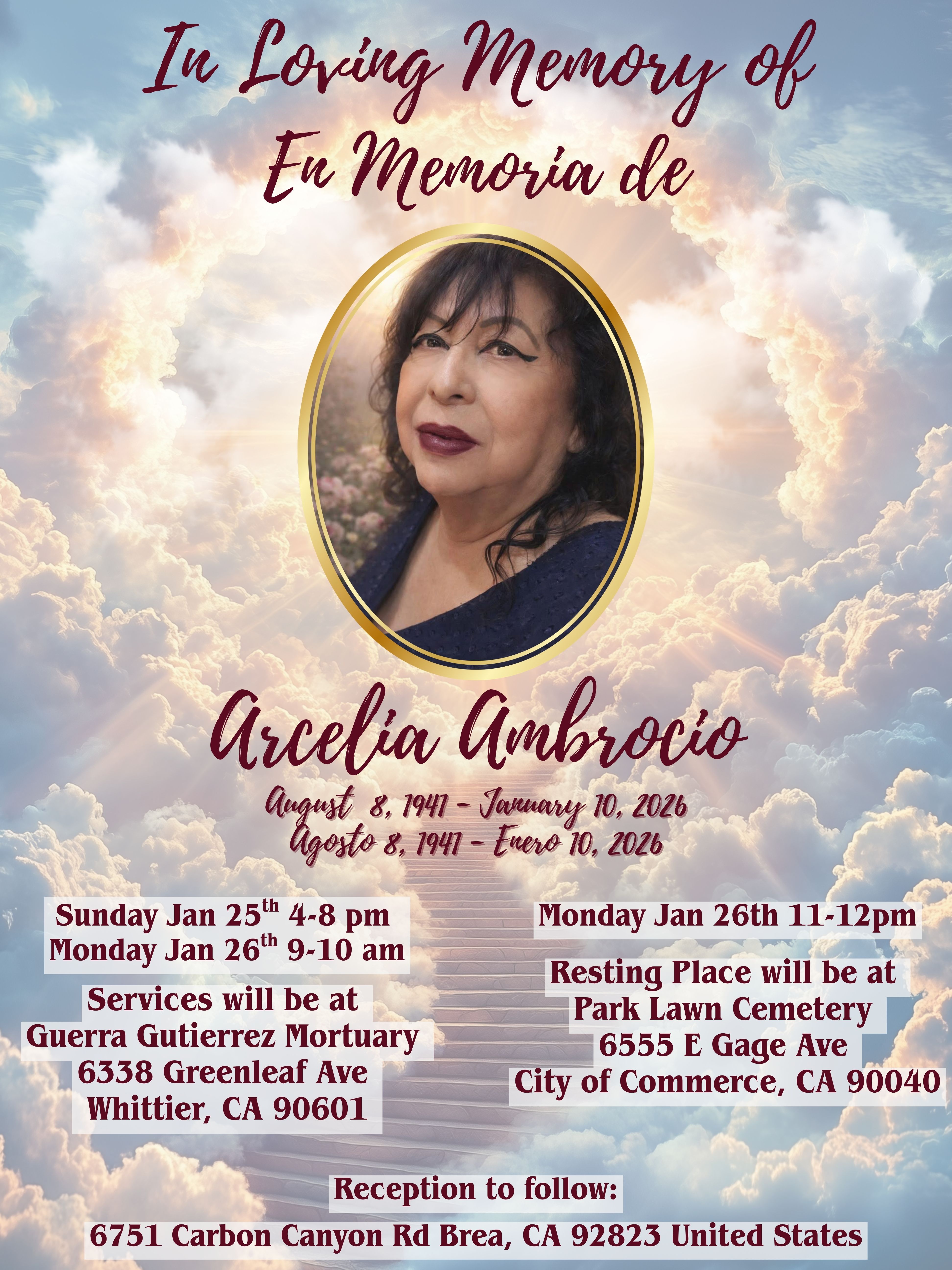 Viewing will also be on Monday January 26,2026 9:00am-10:00am at Guerra Gutierrez Mortuary