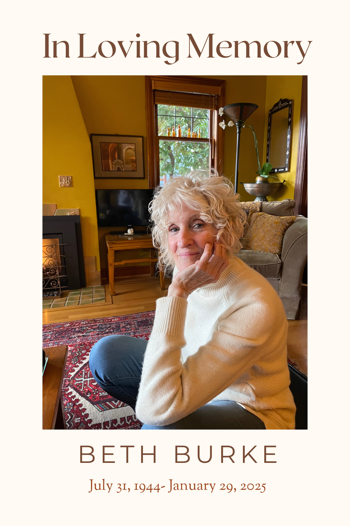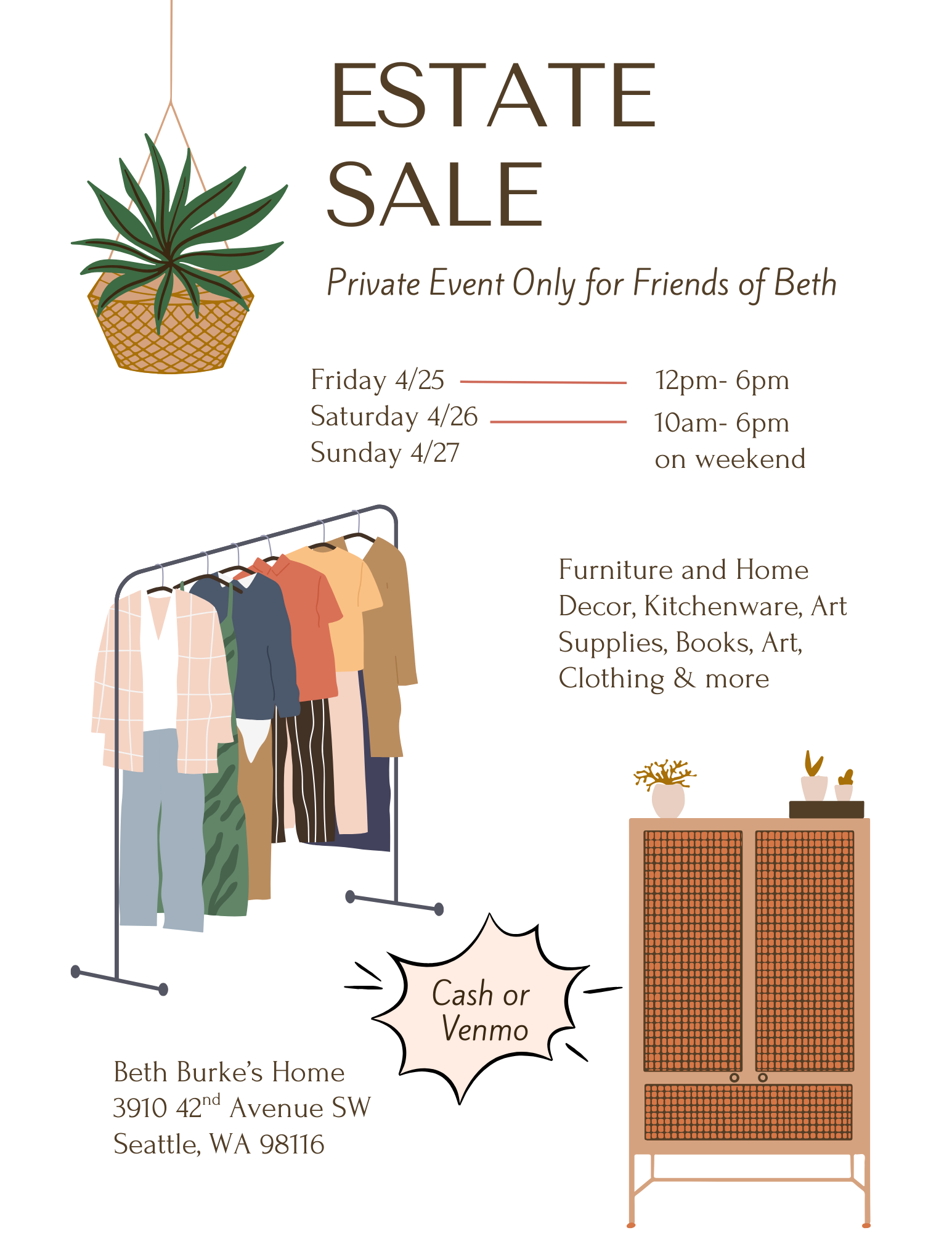 Matthew and Brian Burke are hosting an estate sale of Beth's beautiful home furnishings and belongings, open to friends of Beth.