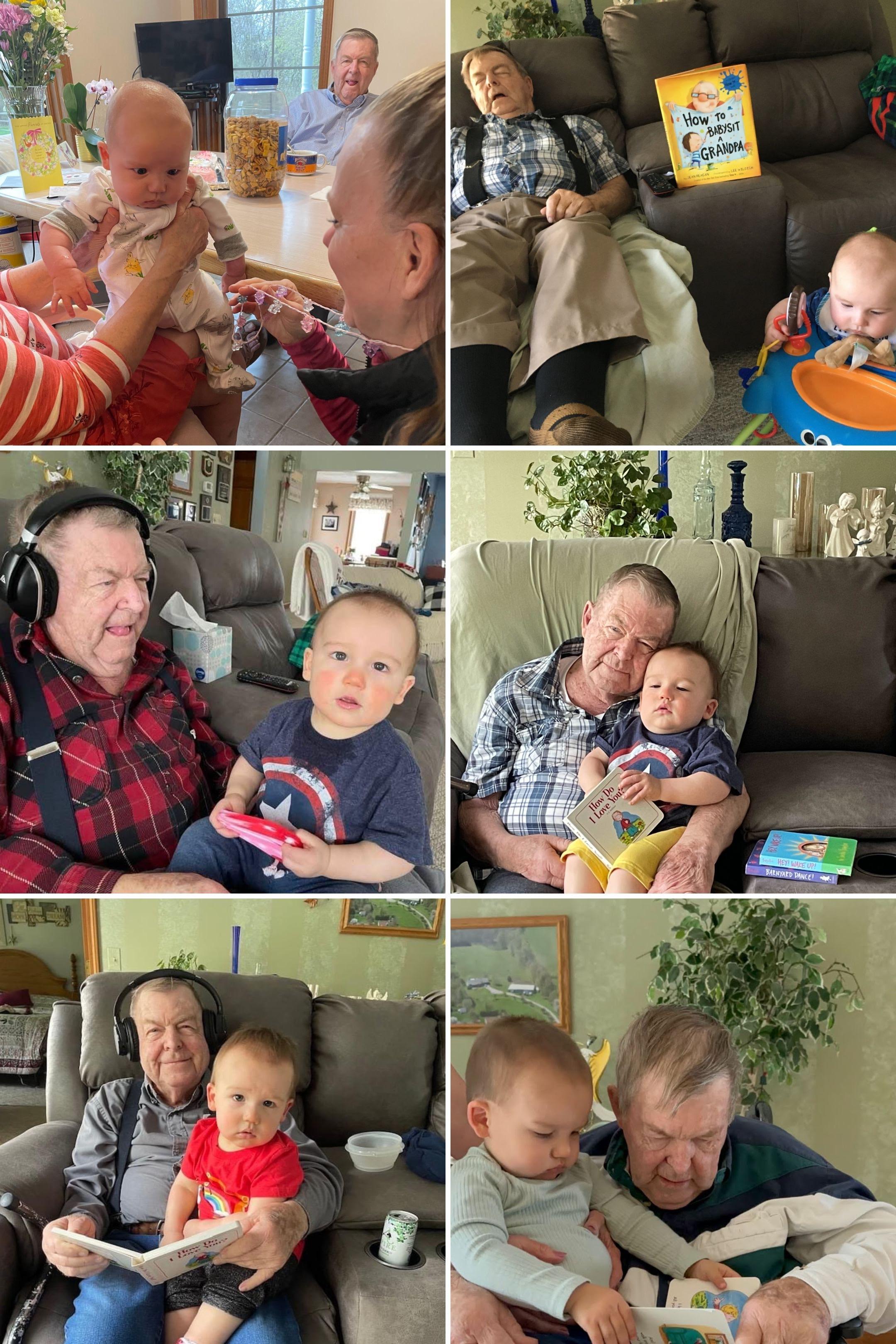 When God Blessed us with Great-Lovebugs, what a dream! Papa got to have many delightful fun times , camping, visiting them in Florida and living with us during Covid for eight weeks that the first three will remember. The next seven he loved to get on the floor with, help them roll over, play with toys or read to them. Raubbie use to come once a week for a day – Papa told me he missed him the last two months. Even though he told me he had to go to work, I put a pink shirt on him and told him he had a special visitor coming – Great-Lovebug #10, Penelope, just two weeks old. Pops loved holding her, kissing her forehead and playing with her fingers – so special for all!