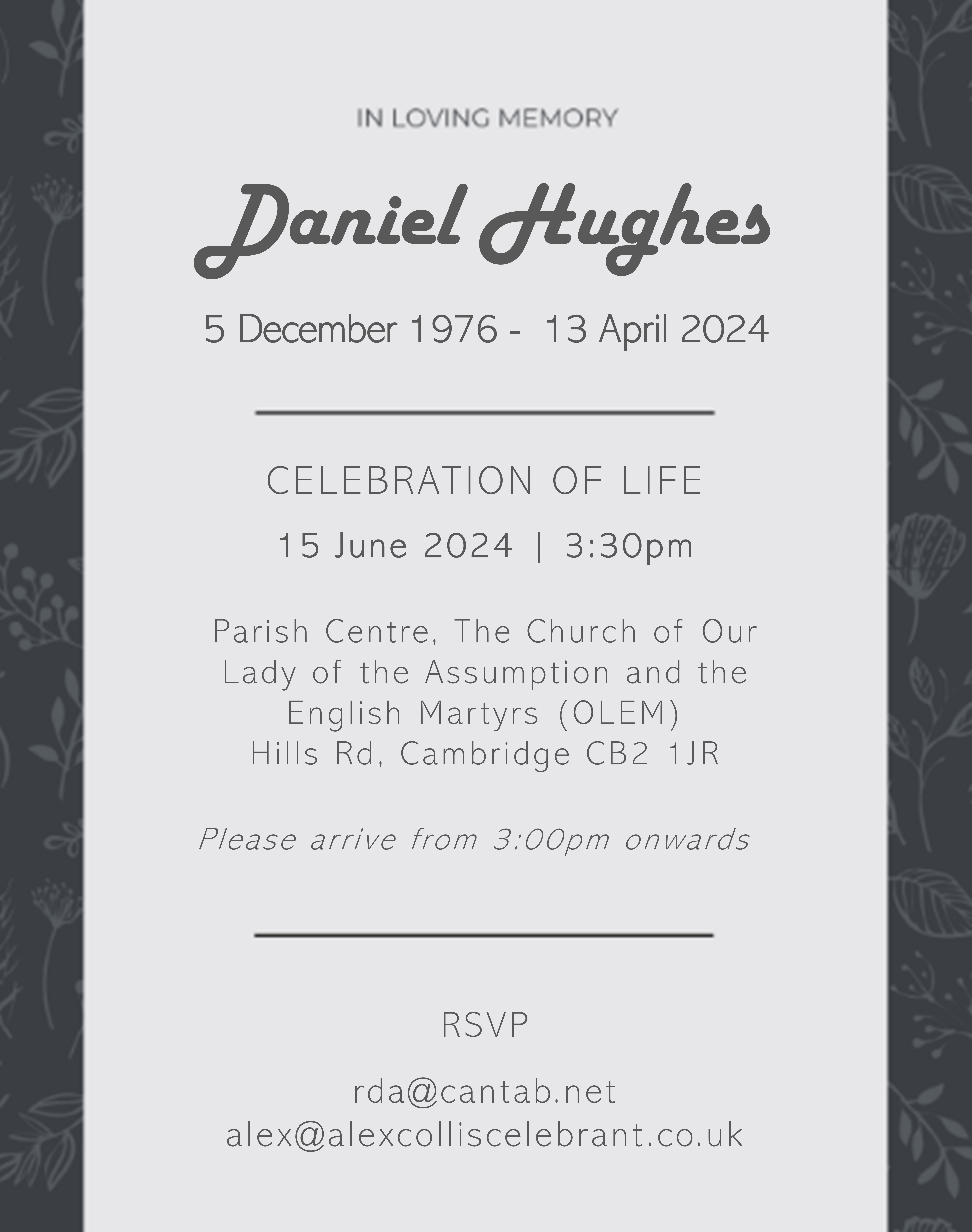 The service will take place at the Parish Centre, not at the church.