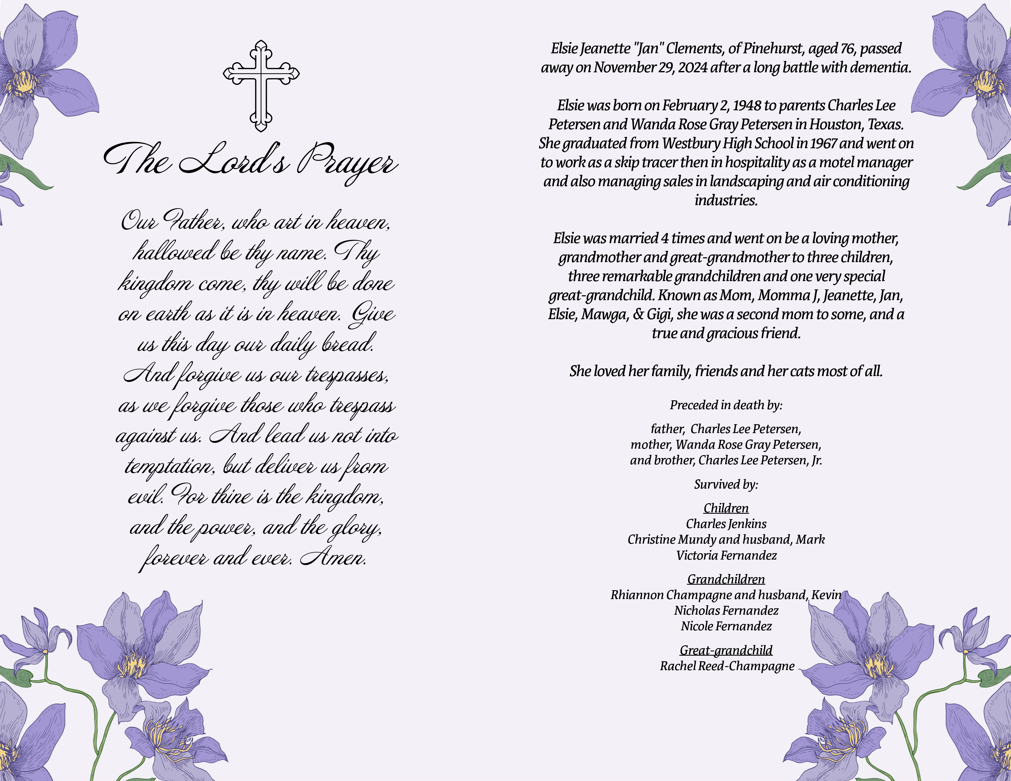 Share your sympathy. Send flowers from a local florist to Elsie's family or funeral.Memories & condolences