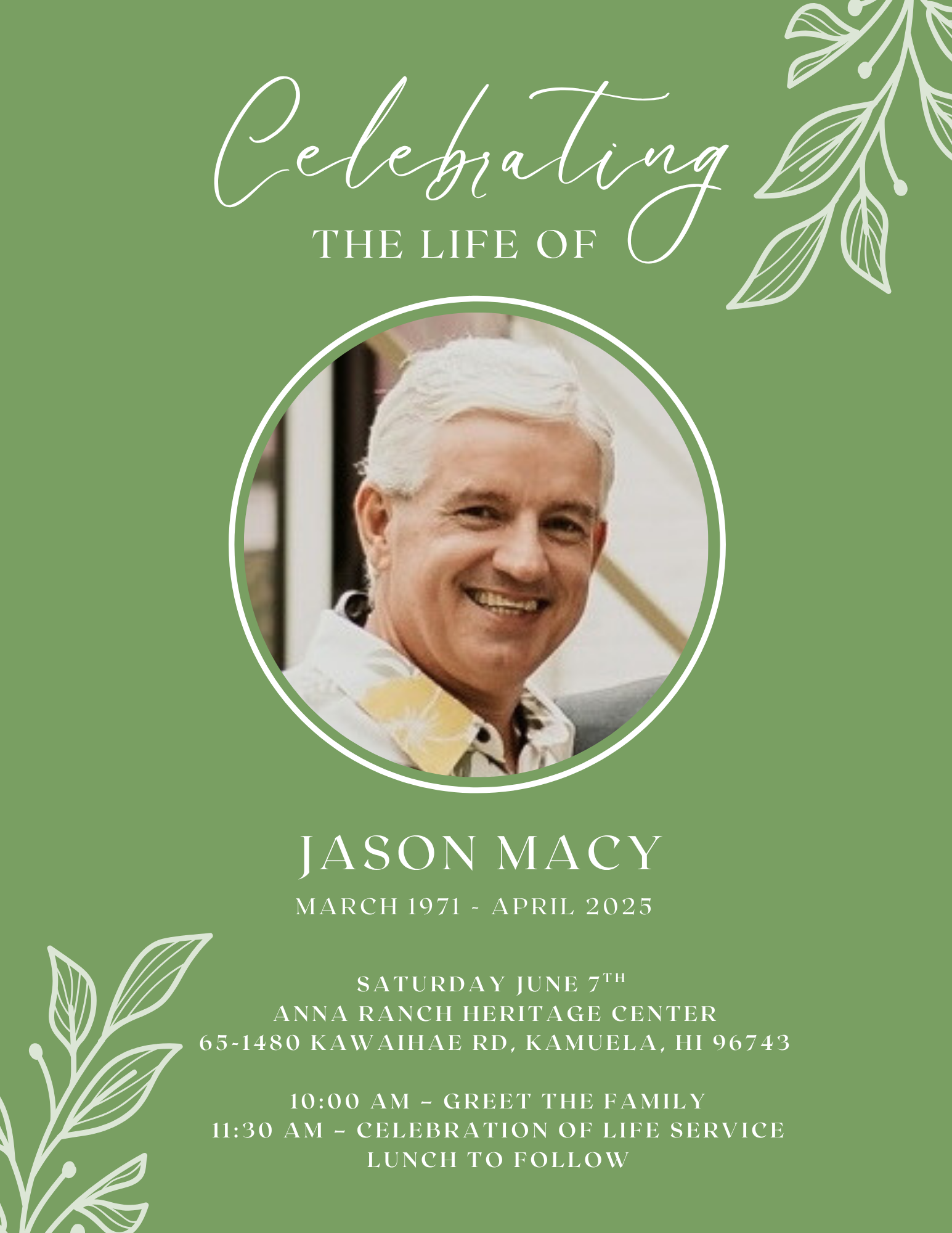 11:30 AM – Celebration of Life Service