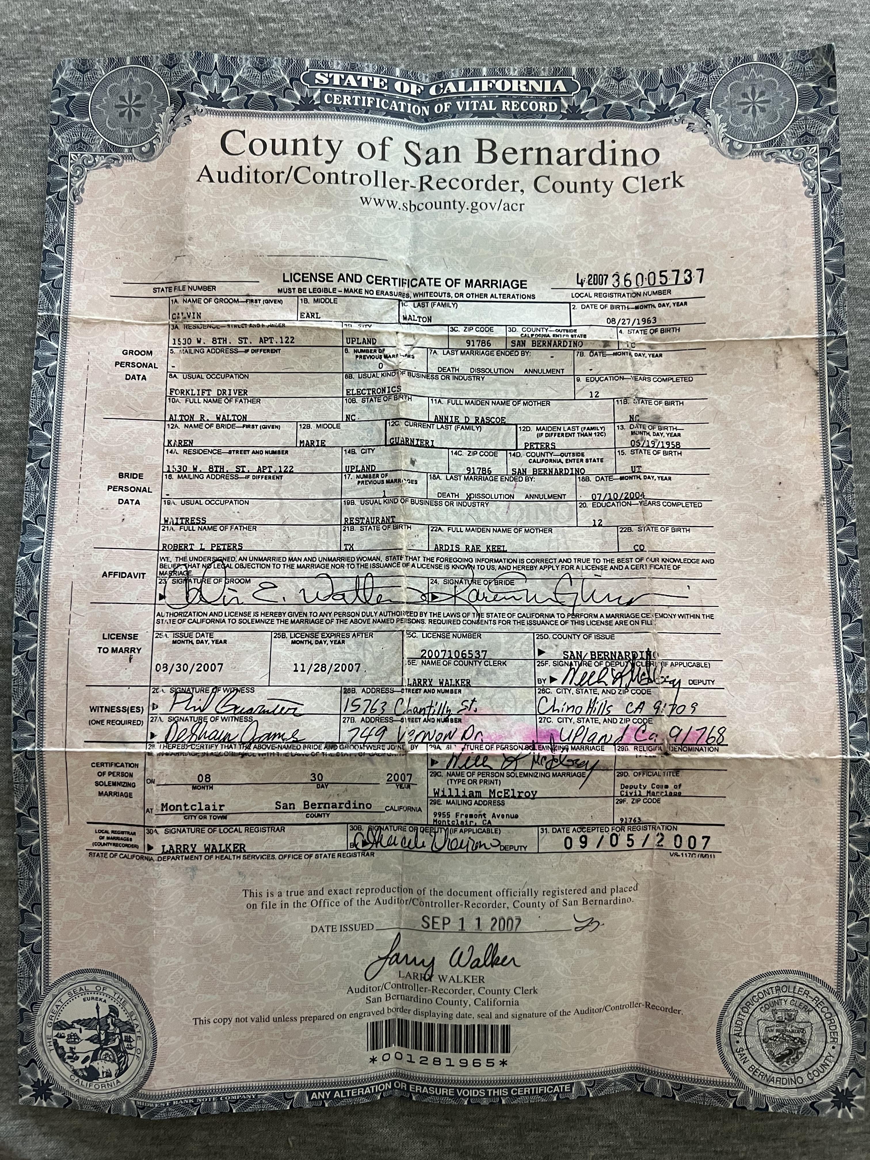 Got married to Calvin Walton
