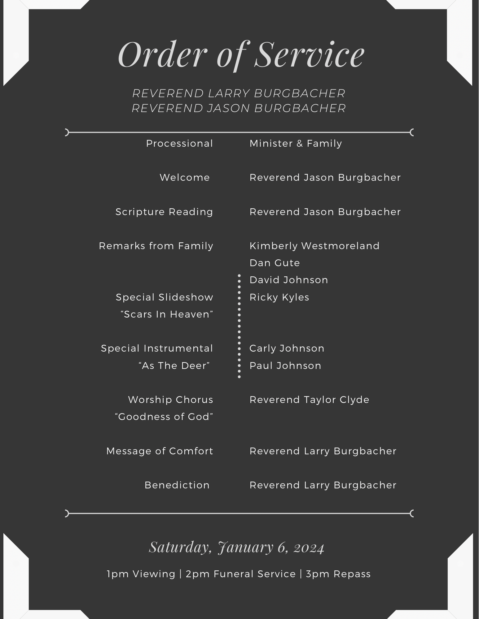 Services: will be held on Saturday, January 6,2024 at 2:00pm