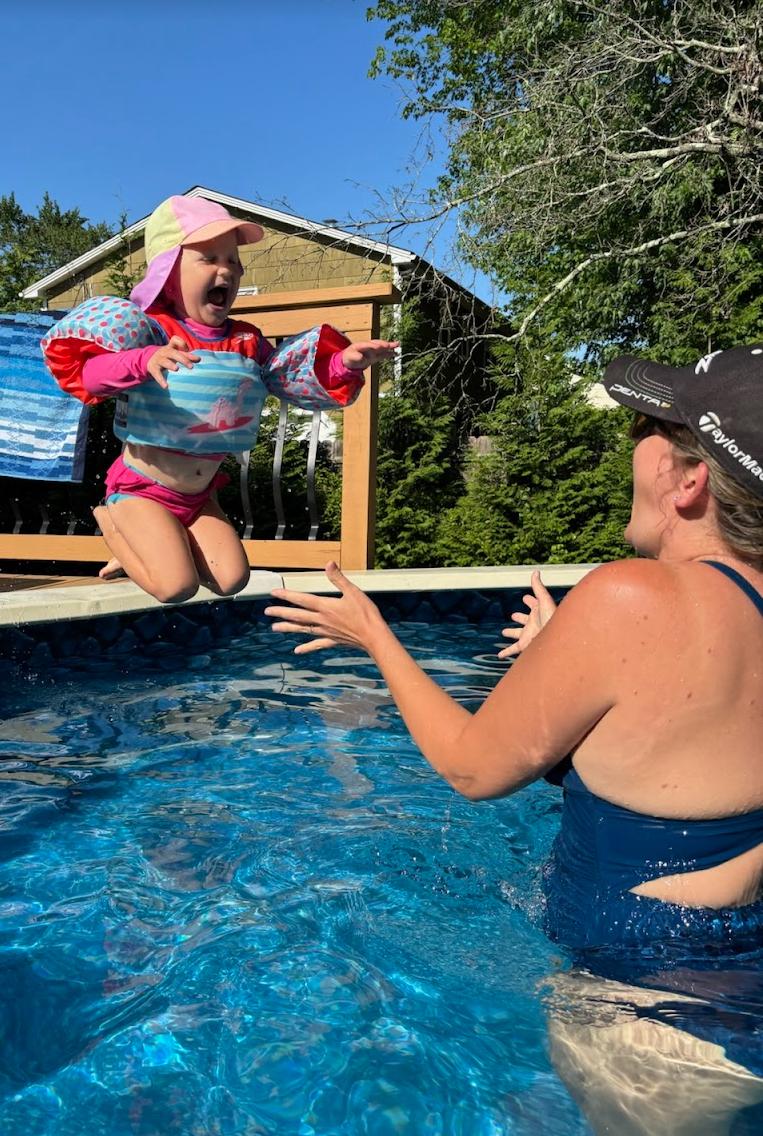 Jumping into mama’s arms at Audra’s party!