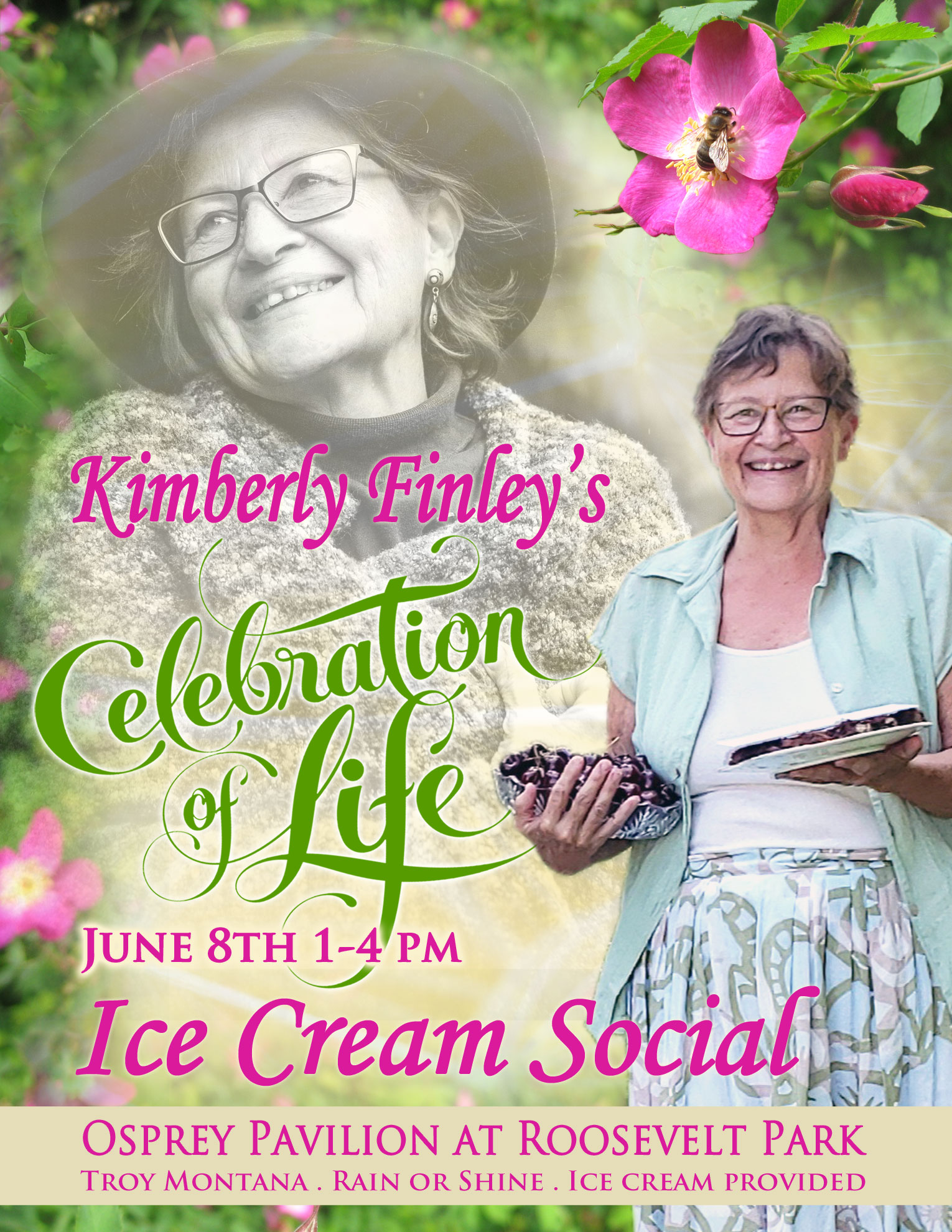 Celebration of Life at the Osprey Pavilion by the Kootenai River, Roosevelt Park, Troy, MT. 1-4 pm Rain or shine! In lieu of cards for her daughters, please consider bringing a card written to Kimberly herself.