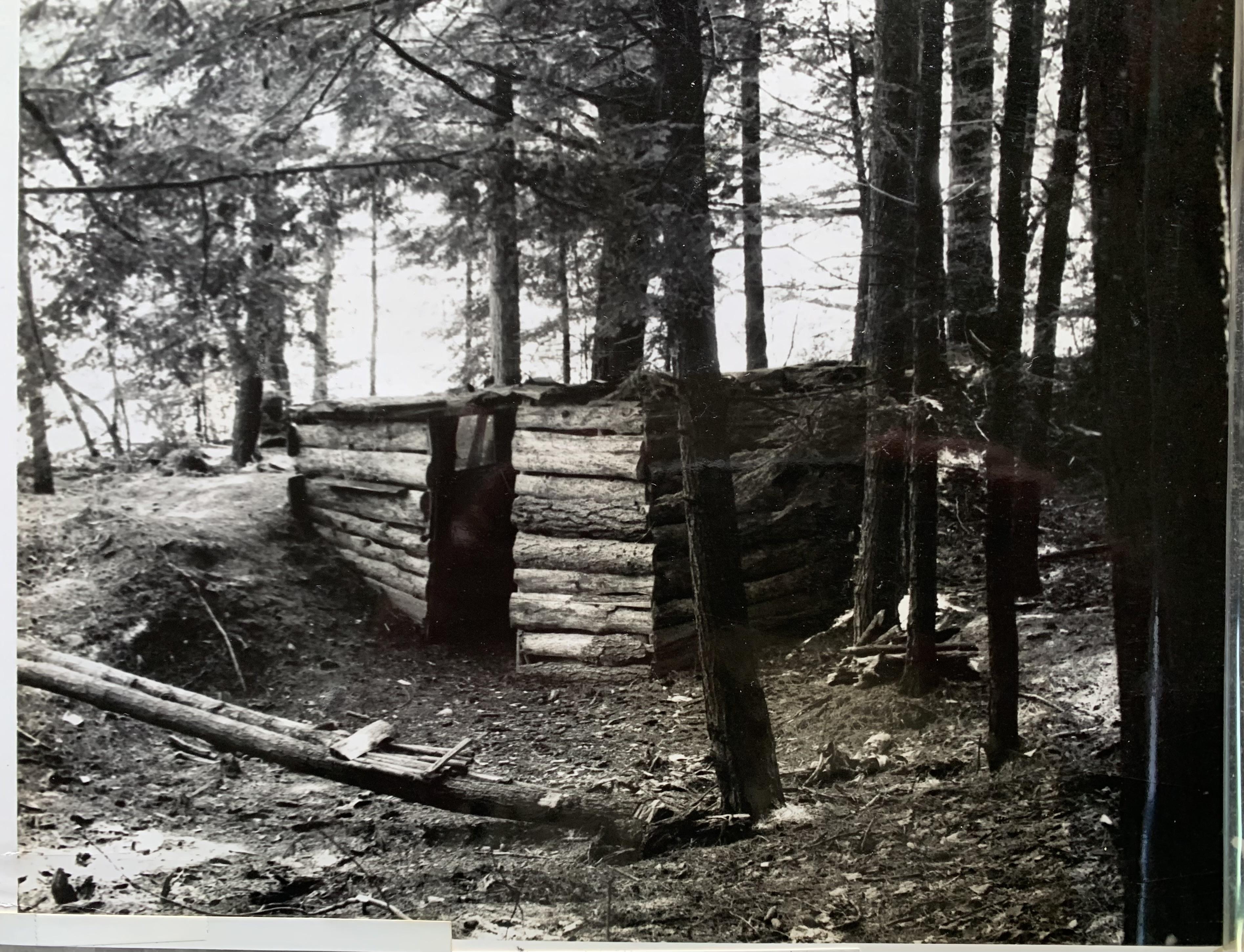Building this shack on the island at Tow Sisters Lake wot Mike and his cousin Donnie, and spending night’s sleeping there and doing ternager things. C. 1960-62