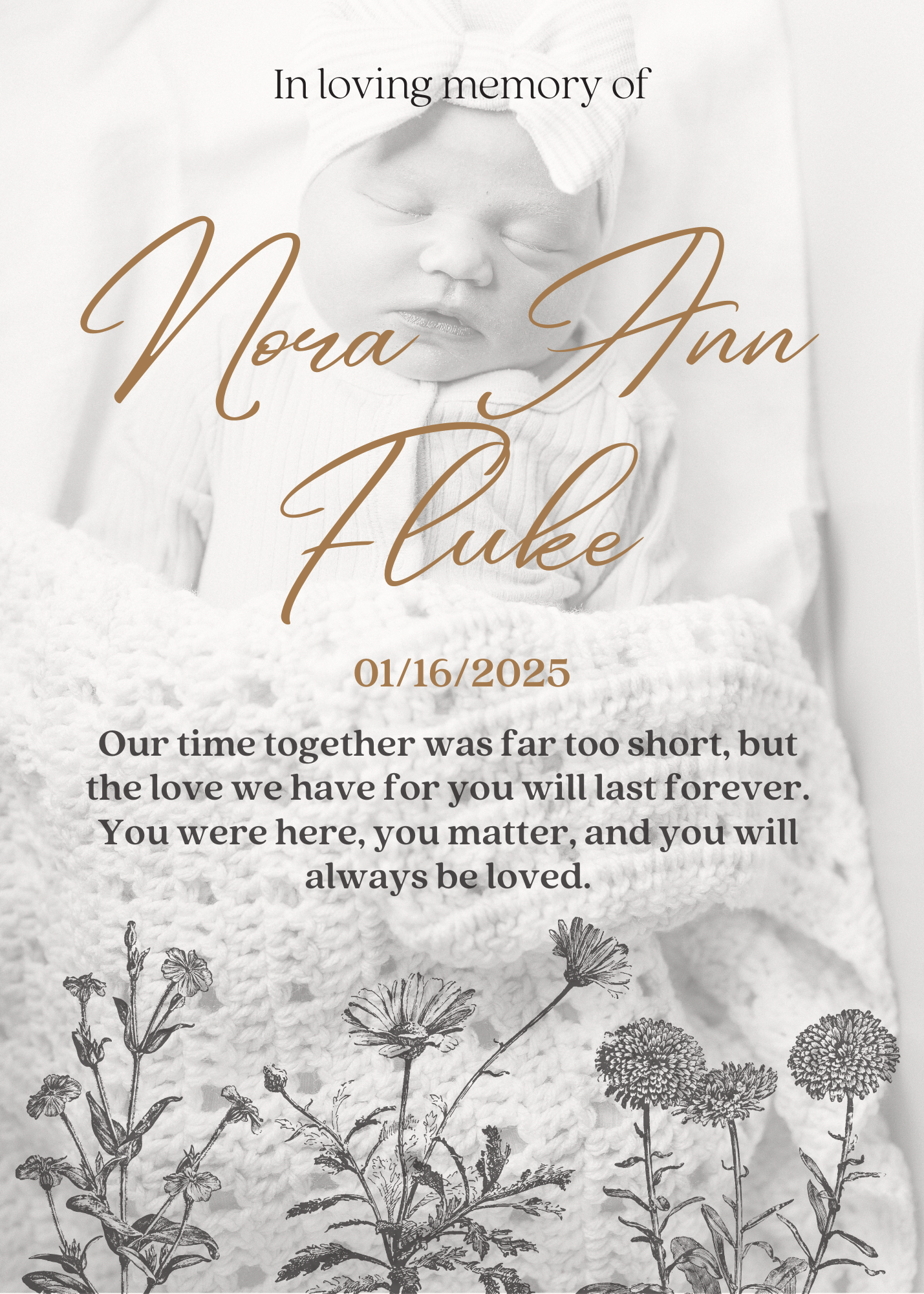Beautiful girl, we were so excited to meet you. Thinking of you every day and wishing you were here