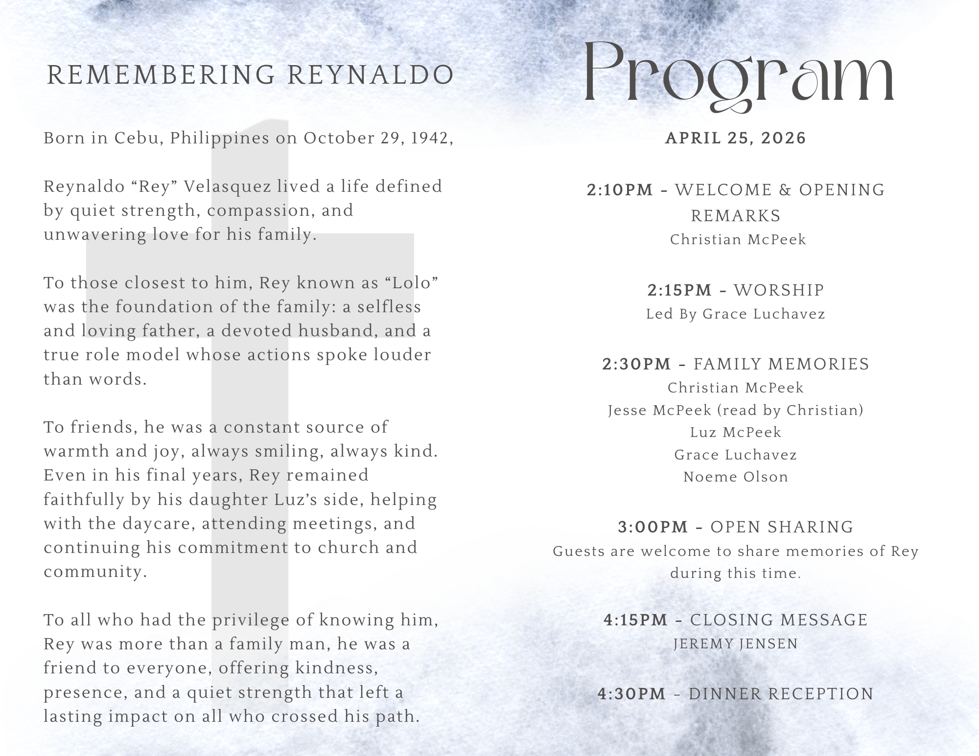 Share your sympathy. Send flowers from a local florist to Rey / Dodong / Lolo's family or funeral.