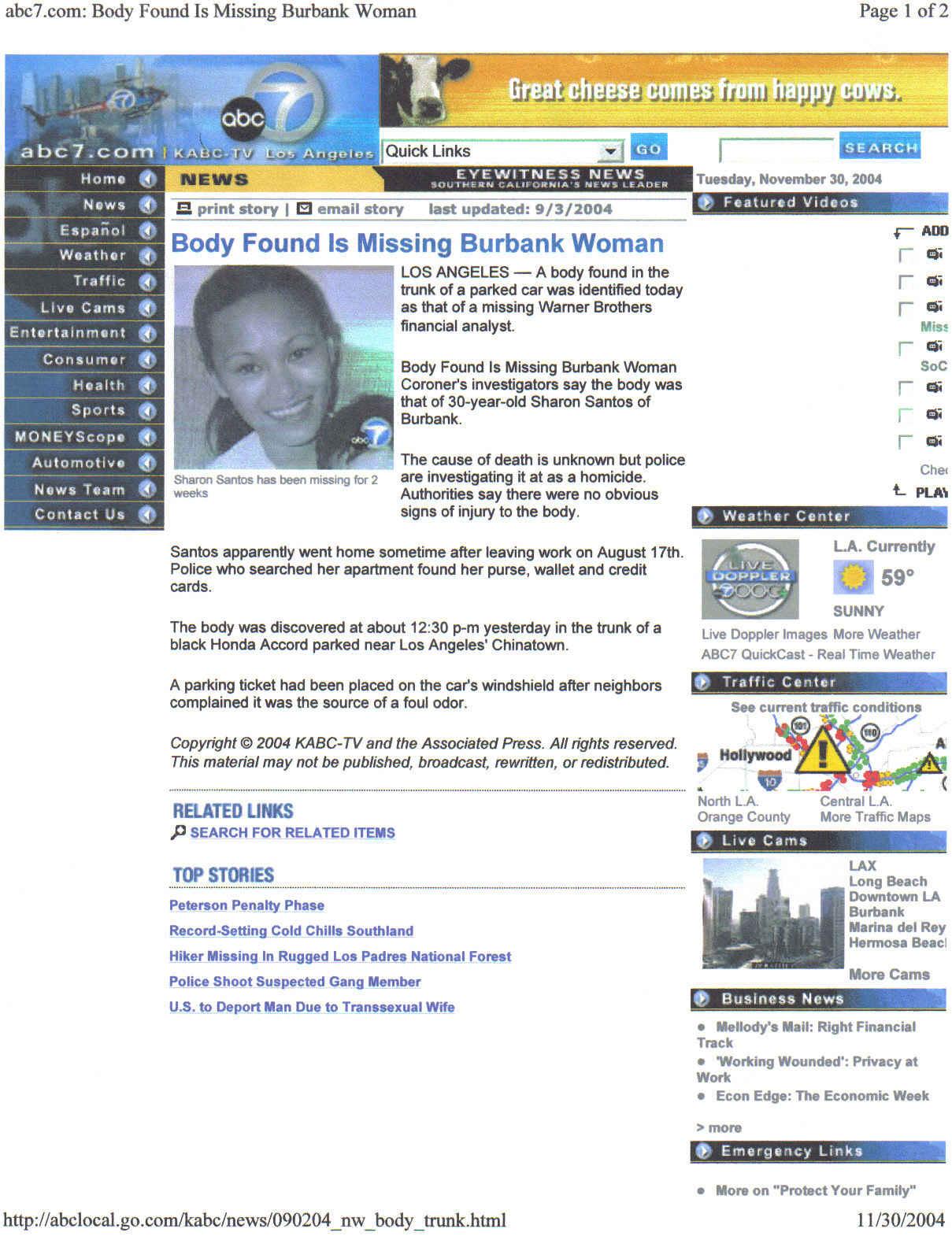 Sharon's Body Found