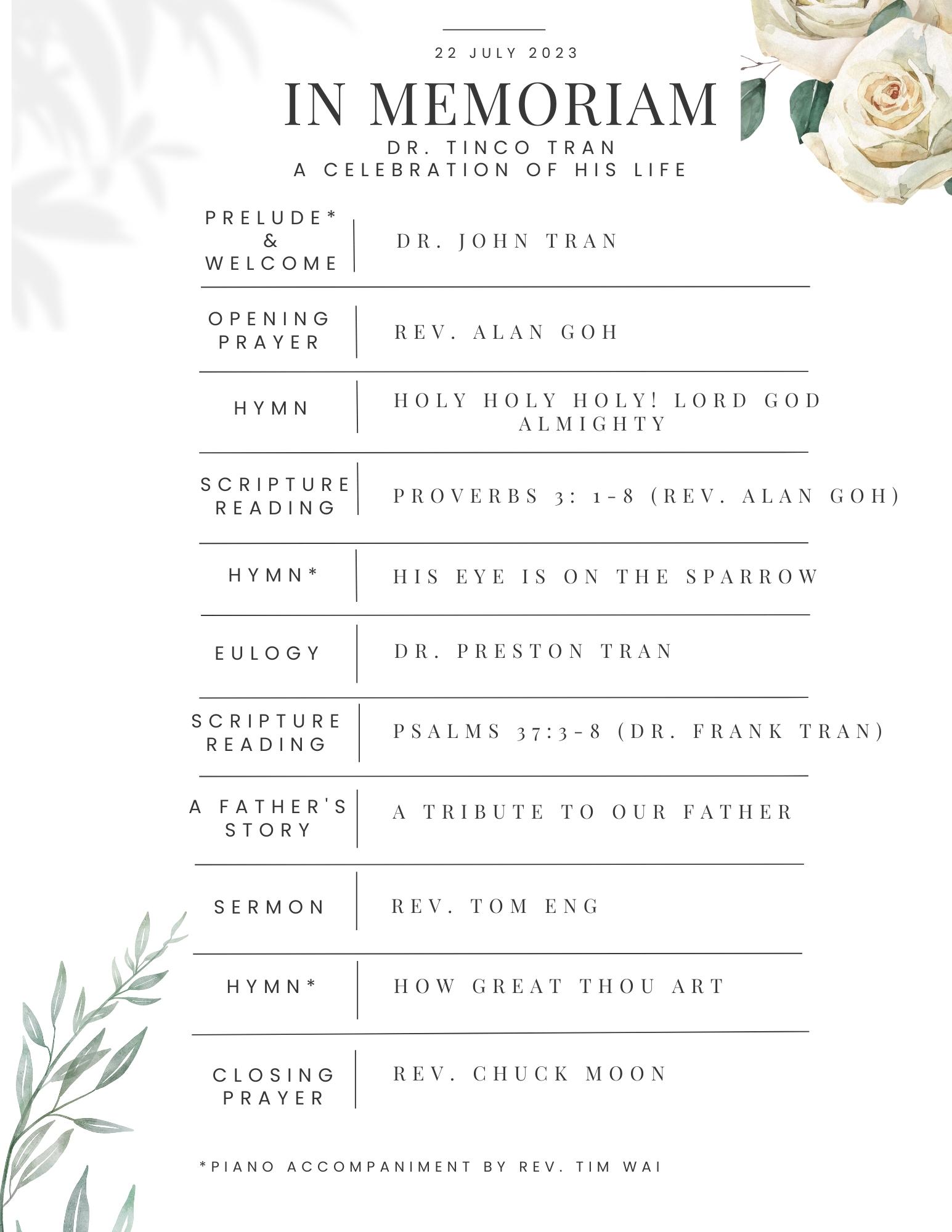 This event was set to live stream, however no link was provided by John Tran or any other of Tinco's loved ones. Please contact them for more information.